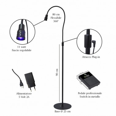 Il dispositivo LIGHTSENSE FLEX è nato per velocizzare il lavoro del LashMaker, collo flessibile che permette una facile regolazione a qualsiasi lettino per estetica, permette di lavorare con le mani libere e decidere quando polimerizzare la colla, basterà tenere premuto il pedale per 1 max 2 secondi, tempo sufficiente per l'indurimento della colla UV LED GLUE.